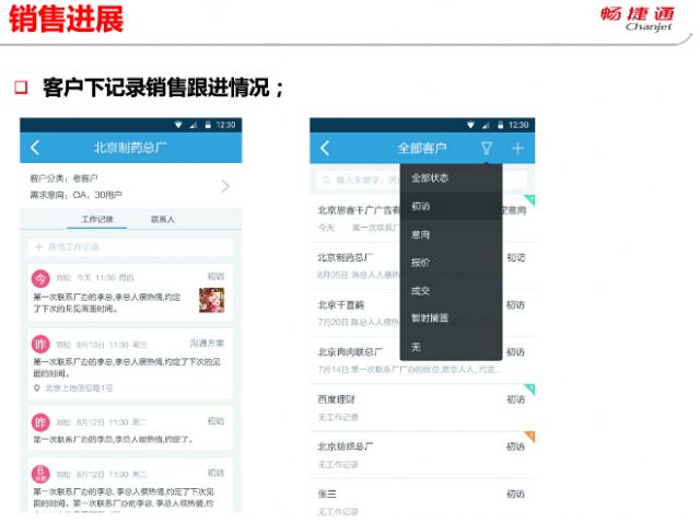 “客户管家”是畅捷通信息技术有限公司融合云计算、移动互联网、社交网络三大技术特性推出的一款热点销售管理工具,以帮助企业提升销售业绩为核心目标,满足企业管理者对整体销售进展全局掌握的需求、满足销售人员对客户信息便捷录入、工作记录随时记录、日程安排、事项及时提醒、重点客户重点跟进的全面需求,彻底革新了传统管理软件繁琐、复杂的应用模式,真正帮助企业管理者和销售人员实现“销售进展,一切皆在手中”的愿景。