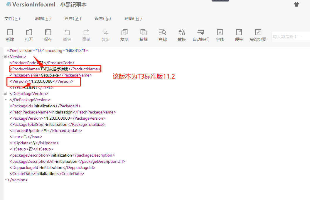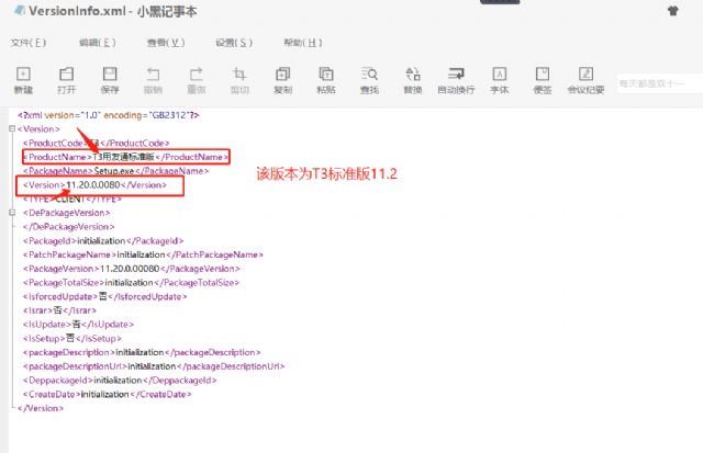 1)查看UFCOMSQLC:\Windows\SysWOW64\UFCOMSQL/VersionInfo.xml 双击打开/找到<ProductName>和<Version>/如下图2)查看软件安装路径下的文件UFSMARTC:\UFSMART\Admin/updatexxx.sql 中间对应的数值的最高值即为该电脑安装的对应软件版本(如:update112.sql 表示该版本为T311.2,具体为标准版还是普及版要进一步确认